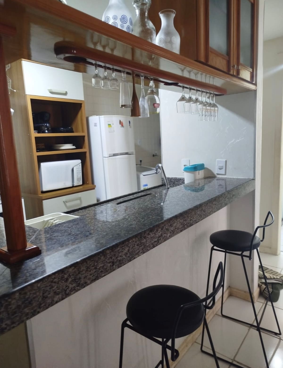 Loft ng 02 kuwarto, na may lahat ng istraktura ng hotel, swimming pool, ballroom, barbecue, mga kuwartong may air conditioning, kusina na may kalan, refrigerator, coffee machine, filter ng tubig, kuwartong may Queen bed at ang iba pang may single bed. 360 megas pribadong Wi - Fi Kuwartong may TV, Sofa, at lahat ng amenidad na nararapat sa iyo. Sa gitna ng guarapari. Ang susunod na pinto ay isang panaderya, mga restawran, ilang hakbang lang mula sa beach.