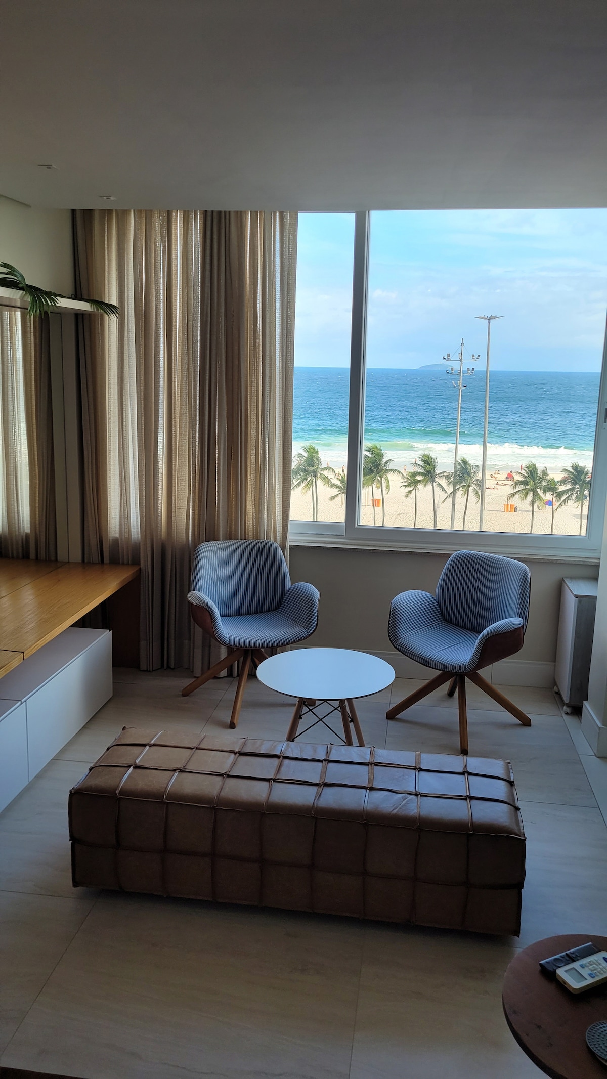 Boho chic style apartment, sa beach ng Copacabana! - Queen bed, sofa bed, dining table, air conditioning at espasyo para sa home office (Wifi 300Mbps). Kusina na may kalan, refrigerator, oven, microwave, blender, coffee maker, juicer, sandwich maker, kawali, kagamitan sa kusina, iba 't ibang libro, gitara at TV na may mga app. - Palengke at parmasya sa ilalim ng gusali, mga restawran at tindahan sa paligid ng apartment. - Paliparan sa 8.3km - Cristo Redentor sa 11.5km - Pão de Açúcar sa 2.8km