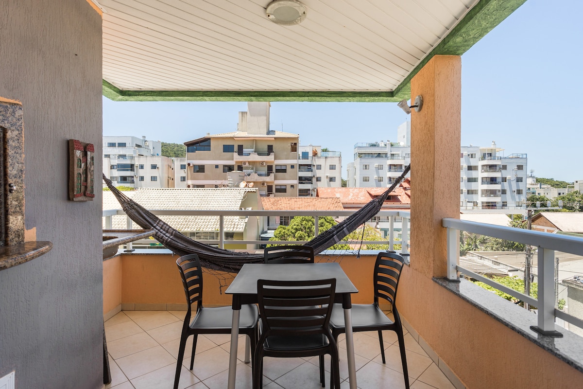 May maayos na dekorasyon at kumpletong apartment sa gitna ng Bombinhas. Mainam para sa mag - asawa, pamilya at grupo ng mga kaibigan. Mayroon itong saklaw na espasyo sa garahe, sapat na barbecue na may balkonahe at kusinang may kumpletong kagamitan. Malapit sa mga restawran, pamilihan at tindahan, magandang simula ito para makilala ang iba 't ibang beach sa rehiyon at ma - enjoy nang mabuti ang beach ng Bombinhas, na may malinaw na tubig nito. Malapit din ang mga aktibidad sa labas tulad ng libingan at macaque hill trail.