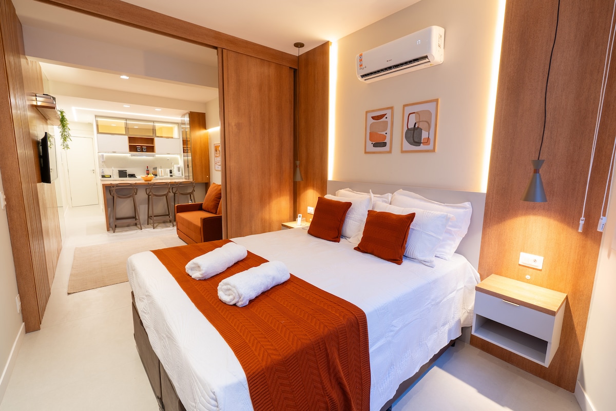 Newly renovated (January 2026), queen-size bed, split air conditioning, and in the best part of Copacabana. This studio has a fascinating view of Copacabana beach at your feet. Restaurants, markets, pharmacies, banks, and bars are just a few meters away. Everything you need to enjoy all the pleasures of the Marvelous City with the greatest comfort. The building has total security and 24-hour concierge service, two social elevators and one service elevator. The building does not have a garage.