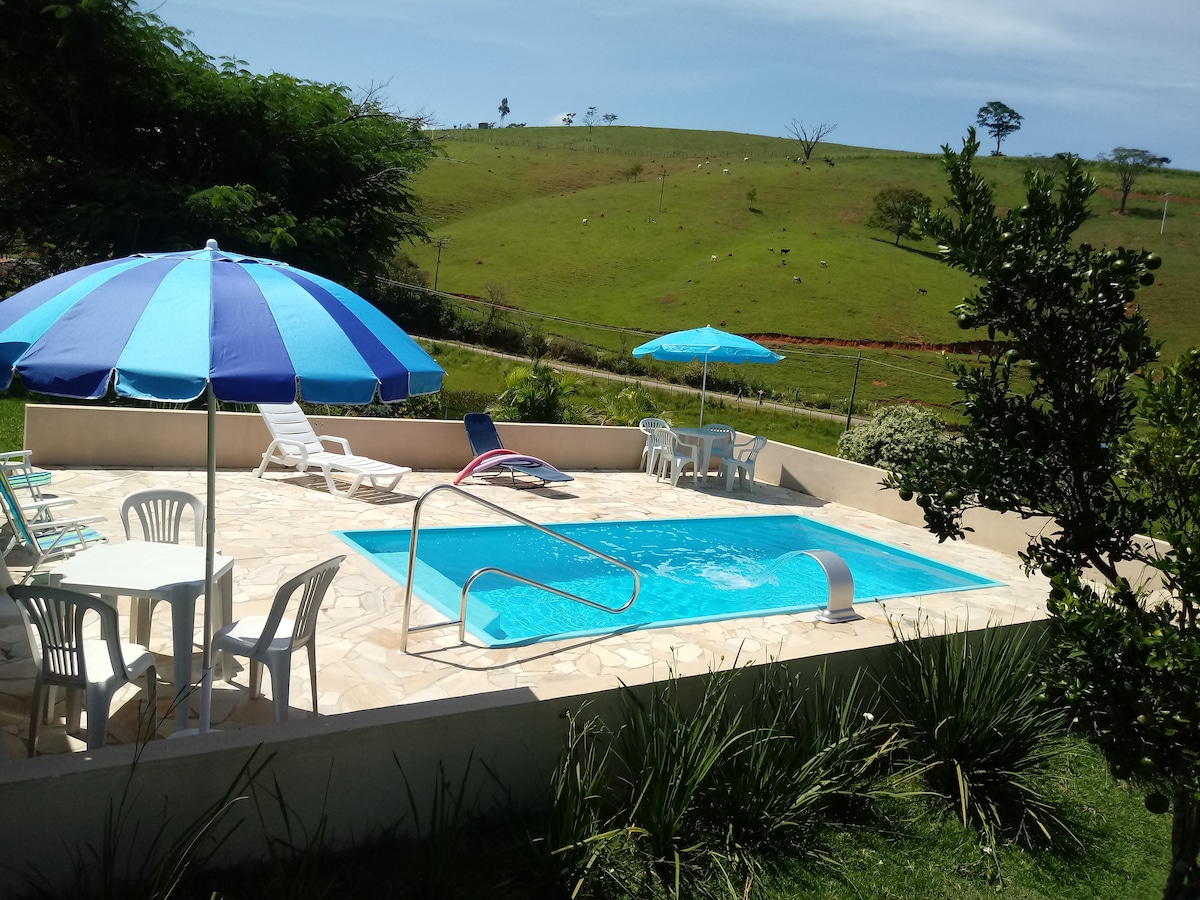 Suíte confortável com 1 cama de casal e 2 camas de solteiro, TV Smart, ventilador de teto, frigobar e espaço para guardar roupas. Varanda com mesas, cadeiras, poltronas, redes, churrasqueira, mesa de ping pong, jogo de dardos e jogos de tabuleiro. Piscina com muito espaço pra tomar sol. Cozinha com fogão, micro-ondas e todos os utensílios necessários. Fire Place. Estacionamento ao lado da suíte. Estamos à 5 minutos do centro da cidade em um bairro rural. Café da manhã é cortesia.