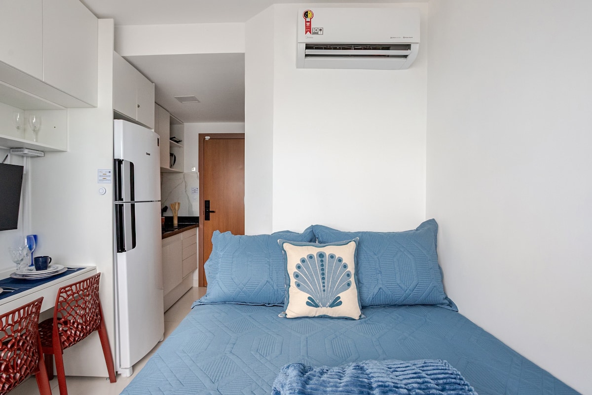 Magrelaks sa natatangi at tahimik na tuluyan na may tanawin ng magandang dagat ng Bahia!! Para sa mga magkarelasyon at naglalakbay nang mag-isa na naghahanap ng praktikal na bakasyunan na may access sa pinakamagagandang beach sa Salvador at sa lahat ng pasilidad sa tabing-dagat, at malapit sa paliparan, convention center, mga shopping mall, bar, at restawran. 24 na oras na access gamit ang facial recognition, swimming pool, coworking space, gym, meeting room, at bike rack. Buong Studio: aircon, cooktop, oven, duplex cooler, smart TV, double bed, Wi‑Fi, at marami pang iba!!