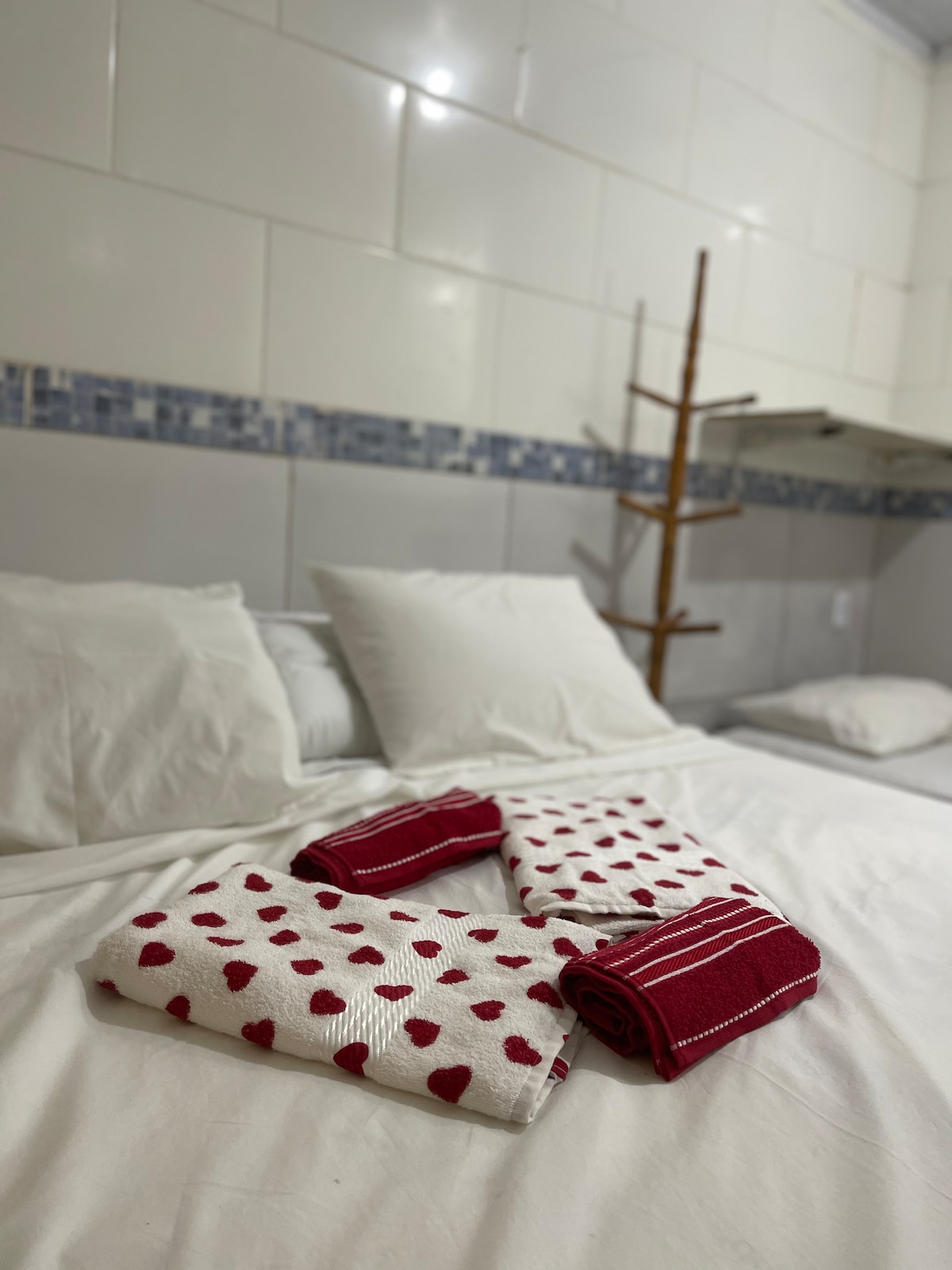 Faça uma pausa paSuíte tripla, ampla e arejada, na frente tem uma varanda com rede. Na suíte possui uma mini cozinha com fogão, geladeira, cafeteira e etc... A suíte também possui uma cama de casal, de solteiro, ar condicionado, ventilador e luz de emergencia. Atrás da suíte também tem um tanque e um varal. fica localizada no final da rua Getulio vargas, chegando na praia do canto. o lugar e bem tranquilo e familiar, TEM ÁGUA QUENTE NO CHUVEIRO. A suíte é independente Só aceitamos pet de pequeno