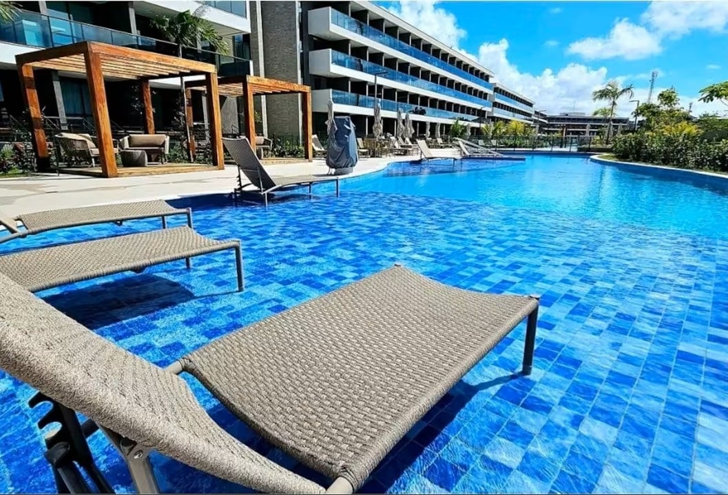 Payagan ang iyong sarili na mabuhay ng ilang araw sa isang maaliwalas,maganda at praktikal, naka - screen na flat, kung saan ang iyong kapakanan ay ang aming misyon! Sa loob ng patag, pahinga, sa labas, isang pambihirang lugar ng paglilibang na may football field, tennis court, gym, restaurant, convenience store, palaruan at mga pangunahing atraksyon: ang masasarap na pool na napapalibutan ng luntiang landscaping, at ito: Ang DAGAT! na naghahanap lang, maaari kang makakuha ng panginginig! Isipin mo kapag sumisid ka sa tubig nito!