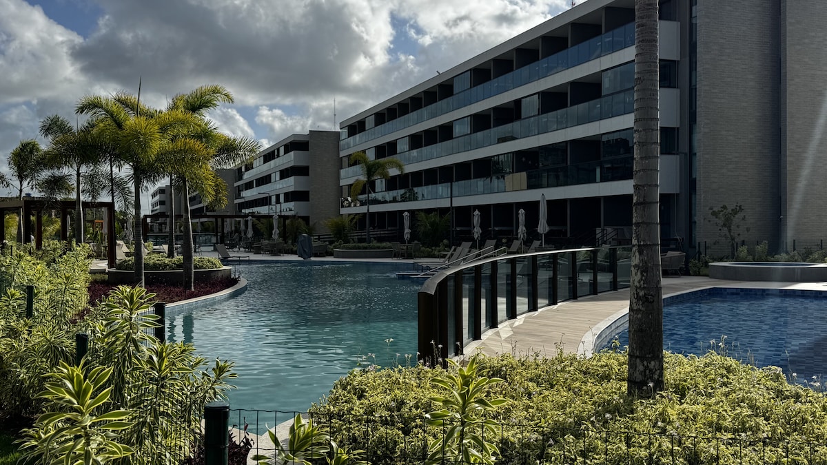 High - end na apartment sa Muro Alto, Porto de Galinhas, na mainam para sa hanggang 4 na tao. Kumpleto ang kagamitan, nag - aalok ito ng sala na may TV at sofa bed, 1 silid - tulugan na may double bed, kumpletong kusina (microwave, coffee maker, kalan at kagamitan), Wi - Fi, air conditioning at kumpletong linen. Balkonahe kung saan matatanaw ang pool, sa isang resort condominium na may direktang access sa beach, paglilibang at seguridad para sa iyong pamamalagi.