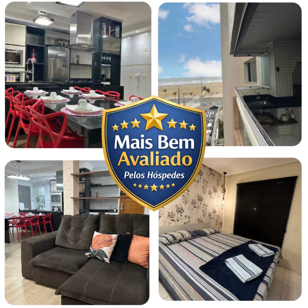 📍 Gawin ang lahat sa pamamagitan ng paglalakad! * 50m do Carrefour, Extra, pharmacies, fair and many bars, restaurants, McDonald's, Habib's and Av. Costa e Silva. 🌊 VISTA DESLUMBRANTE - Beira Mar - Guilhermina Beach! 🕗 Ang pleksibilidad sa pag - check in at pag - check out, walang bayarin at sa loob ng mga posibilidad. 🗝️ Sariling Pag - check in 📶 Wi - Fi Fibre - 400 Mega. 📺 SmartTv -50 Pol. BBQ 🍖 Kit. 🪟 Glazing ng balkonahe. Linen na may🛌 higaan - 100% koton