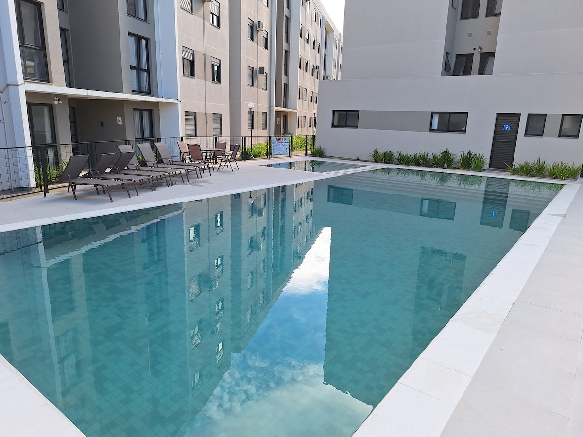 Magrelaks sa tahimik at naka - istilong tuluyan na ito. Matatagpuan ang este LOFT sa UNA park, isang nakaplanong kapitbahayan na malapit sa pelotas mall. Idinisenyo nang may kagandahan at kagandahan sa pagtatapos, ang property ay naglalayong magbigay ng komportable at modernong kapaligiran na may lahat ng pagpipino sa bisita. Nakakuha ang highlight ng projection sa balkonahe, na may hindi kapani - paniwalang tanawin ng araw, sa kutson ng Simmons Geocities, tulad ng ginamit sa 5 - star na hotel sa Rosewood at sa paliguan, na pinapatakbo ng boiler gas ng gusali