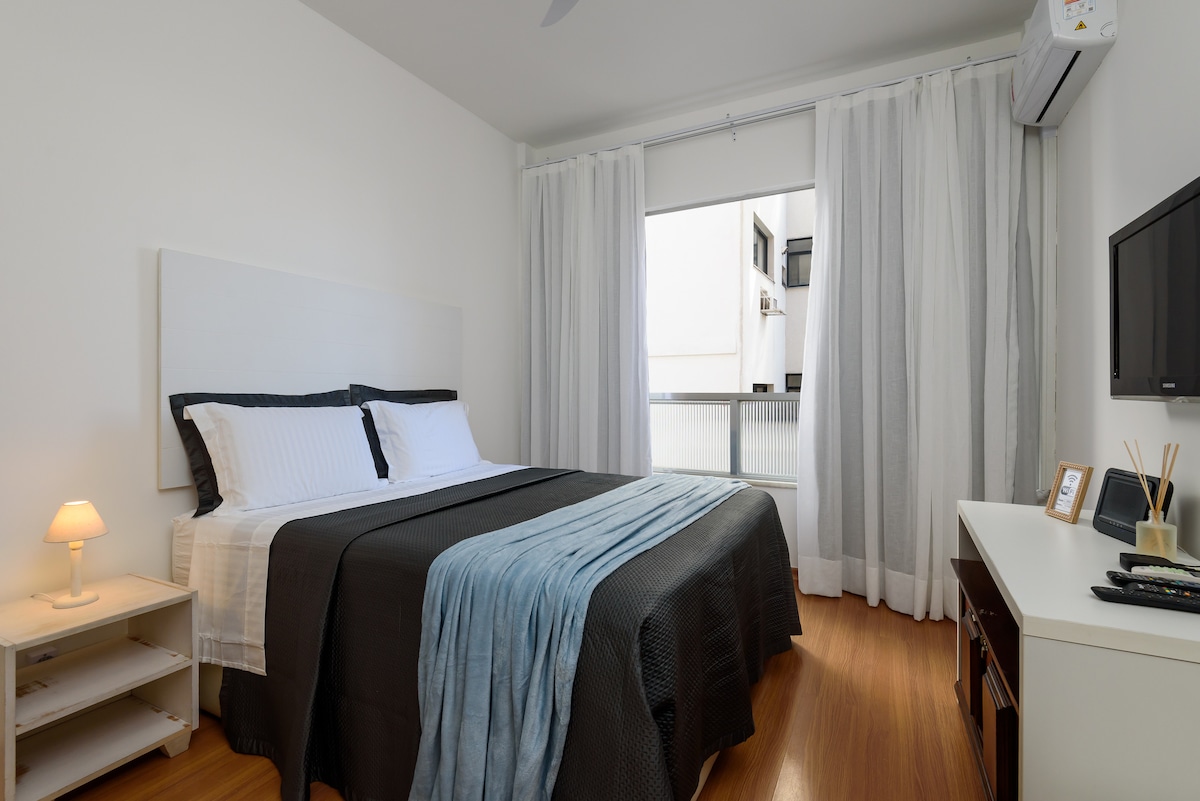 Kamangha - manghang flat, kamakailang na - renovate, bagong muwebles, komportable. Matatagpuan sa ika -26 na may bintana mula sahig hanggang kisame para matamasa ang nakakamanghang tanawin, na karapat - dapat sa poster. Kumpletong kusina, split air - conditioning at smart TV sa kuwarto at sala para sa mas mahusay na kaginhawaan. Kasama sa pang - araw - araw na presyo ang imprastraktura ng condo na may swimming pool, sauna, gym, gym, restawran, at pang - araw - araw na housekeeping. Napakaganda ng kinalalagyan. Ilang metro mula sa beach at ilang hakbang mula sa Shopping Leblon. Para mahalin at bumalik!