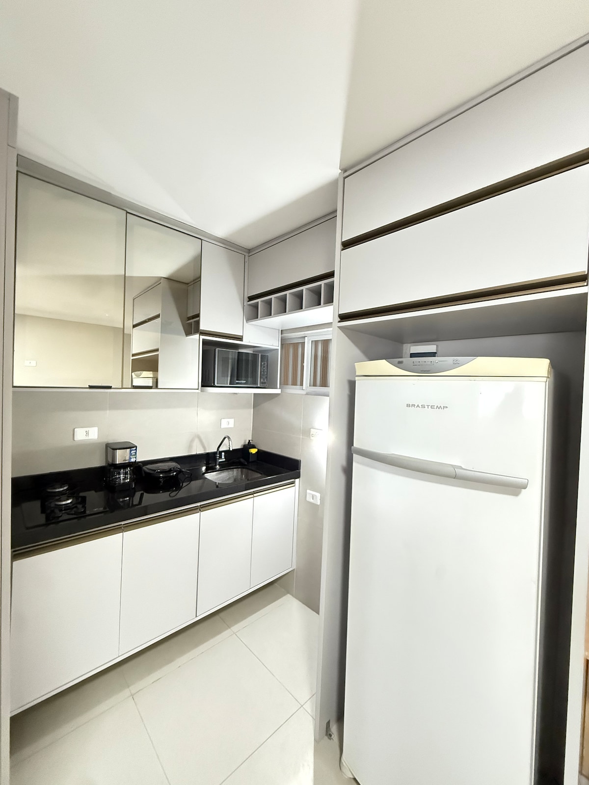 WATERFRONT ang aming gusali. Mula sa balon ang tubig namin pero nasuri at NAAPRUBAHAN na ito para magamit. Nag‑aalok ako ng mineral water kahit kailan. Mayroon kaming ganap na lahat ng uri ng komersyo at serbisyo na maaari mong isipin, sa bloke, lahat ng 4 na minutong lakad. Sa aming bangketa, mayroon kaming 2 kilalang Bar restaurant at 1 cafeteria Bike Itaú, magandang parisukat na may palaruan para sa mga bata at alagang hayop. WALANG garahe pero libre at ligtas ang lahat ng kalsada rito, at may mga camera para sa trapiko at seguridad