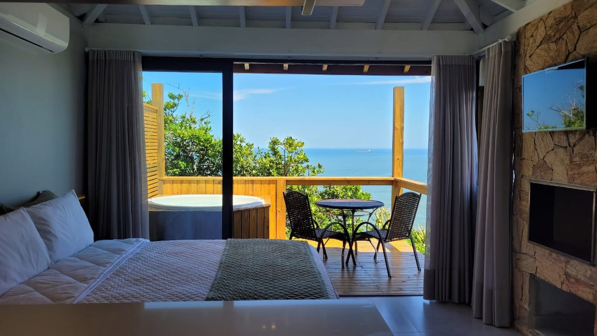 3 Mga komportableng bungalow na may estilo ng arkitektura. Isang magandang tanawin ng dagat at mga burol. Ang bawat bungalow ay may 2 silid - tulugan na may rustic lighting. Matatagpuan ang dalawa sa mga dorm sa itaas na mezzanine na may eksklusibong balkonahe, na may mga nakamamanghang tanawin ng mga beach ng Gamboa at Guarda do Embaú. Sa lugar ng paglilibang, mayroon kaming infinity pool, tanawin ng karagatan, whirlpool sa labas, canopy, fireplace sa labas at gourmet area na may barbecue. Buong lugar.