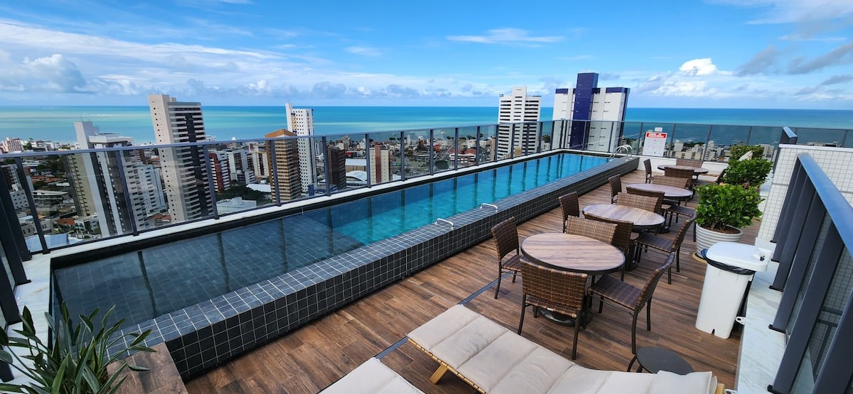 Maaliwalas na Flat sa Bessa na may Pool at Tanawin ng Dagat