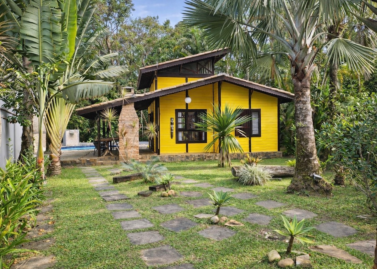 Kaakit - akit na bahay, maaliwalas, na may magandang hardin. 10. Matulog nang komportable. Mayroon itong broadband internet, pati na rin ang balkonahe, mga duyan at BBQ kiosk. Matatagpuan sa block H ng Costa do Sol condominium sa Guaratuba, wala pang 5 minutong lakad ang layo ng bahay papunta sa beach. Ang pag - check in at pag - check out ay sa 12pm, at ang condominium ay hindi pinapayagan ang malakas na ingay pagkatapos ng 10 pm