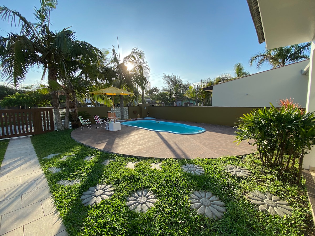 Bahay sa beach na may pool at malaking hardin sa gitna ng kalikasan, malapit sa reserba ng kalikasan ng Itapeva at sa dagat. Mainam na lugar para sa iyong paglilibang, pahinga, mga party at mga aktibidad sa isports. Pool para sa mga may sapat na gulang at bata, volleyball/futvolley court, magandang hardin sa labas para sa mga aktibidad sa labas. Malaki at komportableng tuluyan para masiyahan ka kasama ng iyong mga kaibigan at pamilya. 720 metro ang layo ng lahat ng lugar na ito mula sa gilid ng beach ng Itapeva. Binubuo ang hardin ng damuhan sa gitna ng berde na may kabuuang privacy at eksklusibo.
