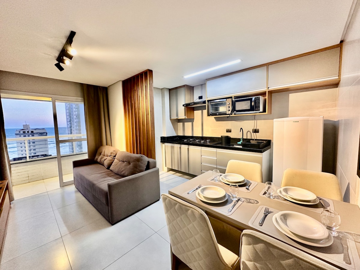 Kamangha - manghang kabuuang tanawin sa harap ng dagat sa isang napakarilag na apartment na pinalamutian sa harap ng dagat na may kabuuang 2 dorm, (1 suite). Air conditioning. Ang pinakamaganda at kaakit - akit na sumikat sa araw, kasama ang masasarap na ingay ng dagat! Makakaramdam ka ng kapayapaan at matutuwa ka sa karanasang ito! Bukod pa rito, magkaroon ng pribilehiyo na masaksihan ang paglubog ng araw sa harap ng dagat sa isang magandang sala at silid - kainan na may air conditioning, de - kalidad na muwebles, smart TV, coffee maker ng Nespresso, kumpletong kusina na may induction stove.