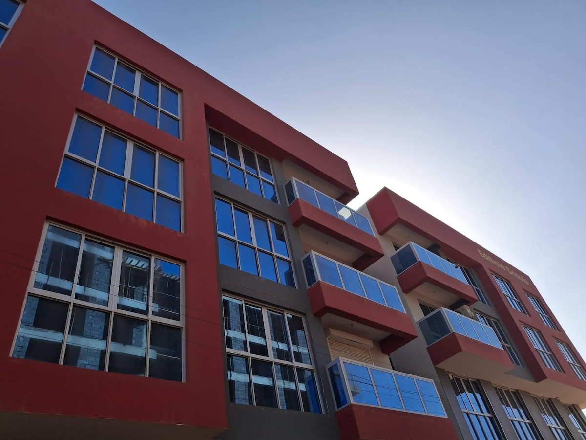 Ang aming moderno at komportableng apartment na may isang kuwarto sa pangunahing kalsada ng Achada Santo António, Praia, Cape Verde. - Nasa ika -4 na palapag ang apartment, - May elevator, - 3 minutong biyahe at 12 minutong lakad papunta sa beach, - Gamit ang AC, - Mainit at malamig na tubig, - Smart TV. (Magkapareho ang mga apartment na 4A at 4B)