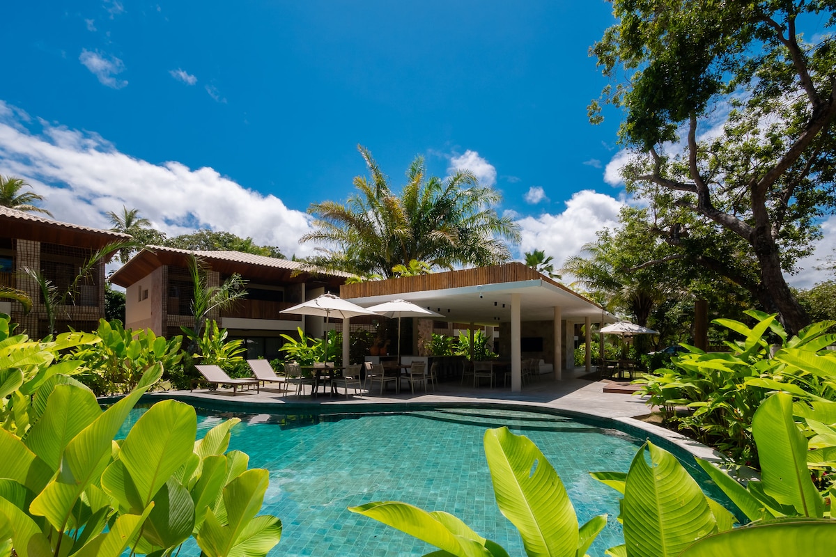 Isipin na simulan ang iyong araw sa pamamagitan ng pagkakaroon ng kape sa balkonahe at sa ilang hakbang lang pumili sa pagitan ng beach o kaakit - akit na nayon. Nag - aalok ang aming nayon, na may magandang dekorasyon, komportableng kapaligiran, malawak at maraming estilo sa isang condominium na may hardin, seguridad at paradahan. Mabilis na Wi - Fi, merkado sa tabi at bawat kaginhawaan para sa mga mag - asawa, pamilya o kaibigan. Maluwang, bagong na - renovate at kaakit - akit na bakasyunan para makapagpahinga at mamuhay nang pinakamaganda sa Praia do Forte.