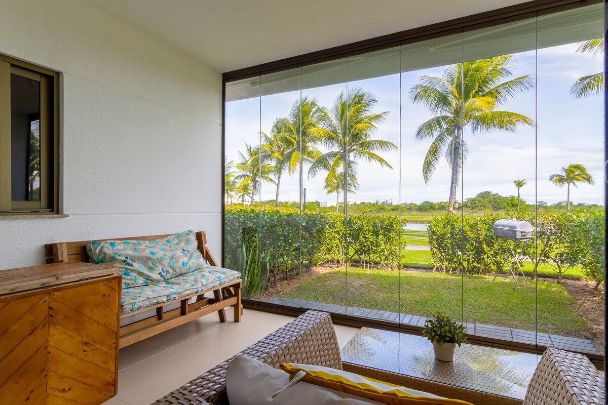2/4 Luxury Ground Floor, tanawin ng lawa, na matatagpuan sa Magnifico Complex Iberostar Praia do Forte, mas mahusay at mas ligtas na lokasyon (24 na oras na seguridad). Sa pamamagitan ng pribadong beach (ang serbisyo ng tent ay napupunta sa buhangin, empleyado upang maglagay ng lilim, mga upuan sa beach at maaari naming gawin ang aming cooler). Sa property, may lahat ng accessory sa higaan, mesa, paliguan, at kusina, washing machine.. Apê first line, malinis, komportable, at organisado nang may pinakamaraming pagmamahal para tanggapin ka. MALIGAYANG PAGDATING!