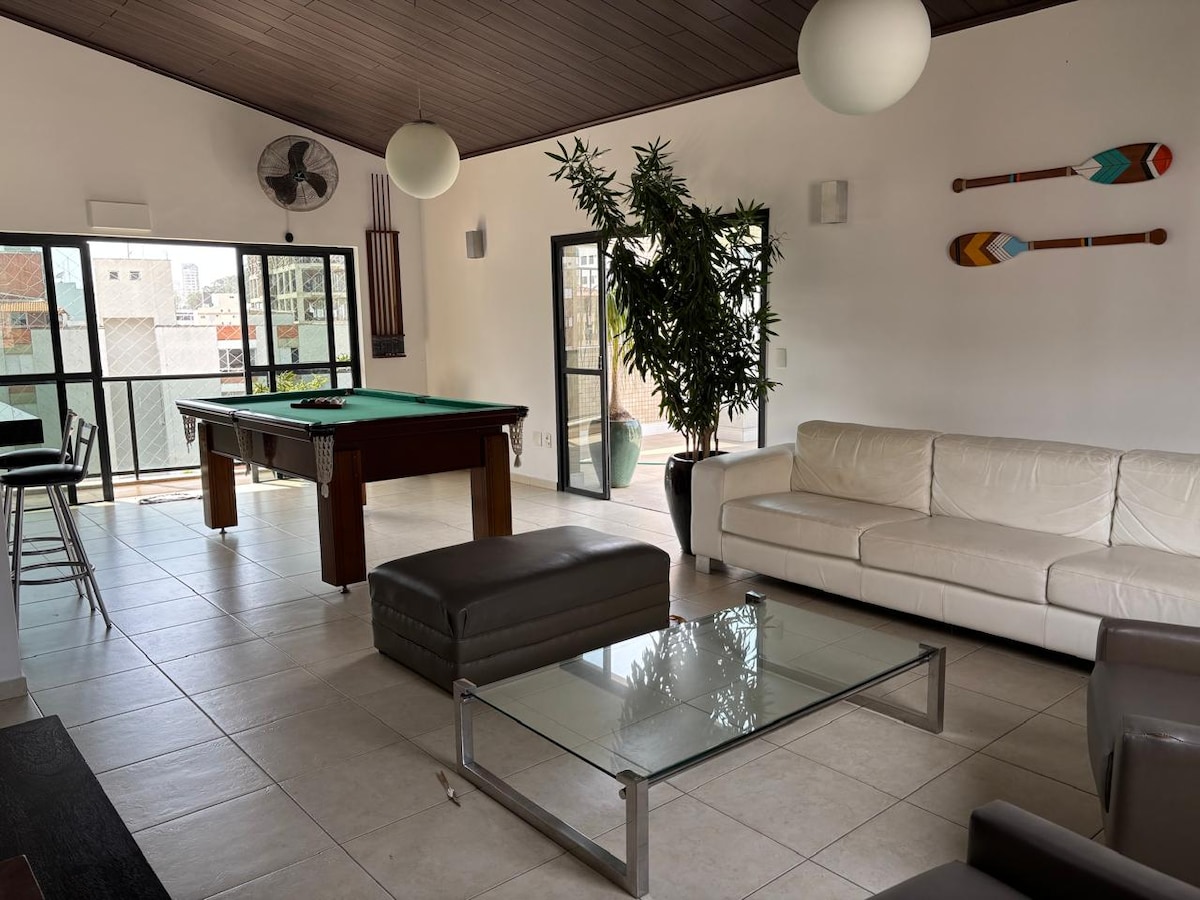Maligayang pagdating sa aming sulok sa Guarujá! Idinisenyo ang aming apartment para sa mga pamilya kabilang ang mga Alagang Hayop, at may hanggang 4 na tao! Napakagandang lokasyon, 10 minutong lakad lang ang layo mula sa Praia da Enseada, napapalibutan ang aming apartment ng mga pamilihan, restawran, parmasya, at alagang hayop Ang beach ay 10 minutong lakad lang ang layo, ang apt ay mayroon ding lahat ng istraktura para sa Home Office, na may high - speed internet, monitor at keyboard at wireless mouse kit. Halika at tiyak na matutuwa ka!