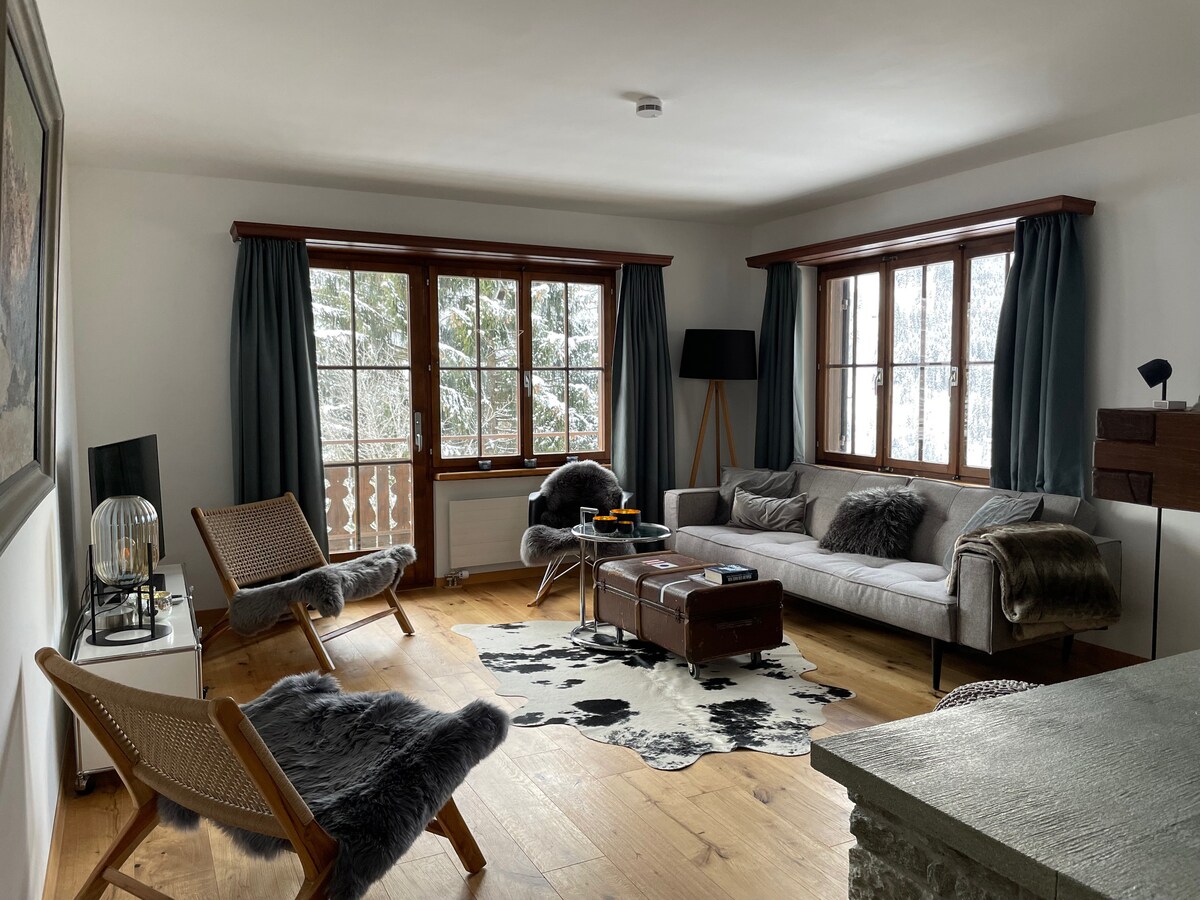 Bagong renovated at kaibig - ibig na pinalamutian 4.5 room family apartment sa pinakamababang palapag ng isang magandang kahoy na Chalet na may apat na magkahiwalay na apartment. Nag - aalok ang apartment ng direktang access sa hardin. Matatagpuan ang Chalet Pradella sa tahimik na lugar na napapalibutan ng kalikasan at may magandang tanawin ng bundok. Gayunpaman, malapit ito sa sentro ng Arosa.