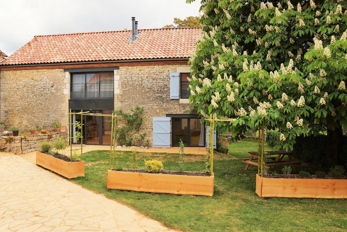 Maliit na bahay ng 20 m2 , sa kanayunan. Naibalik nang may pag - aalaga, may kasama itong sala na may double sofa bed, kitchenette, at mainit na chalet na uri ng banyo. Mayroon itong kahoy na nasusunog na kalan. Sinasamantala nito ang isang may kulay na lugar na nilagyan ng BBQ at mga muwebles sa hardin at isang lugar na bubukas papunta sa malawak na tanawin sa kanayunan. Isang stream sa kahabaan ng praire, mga hiking trail, at ang kalapit na medyebal na nayon ay nag - aanyaya sa iyong maglakad .