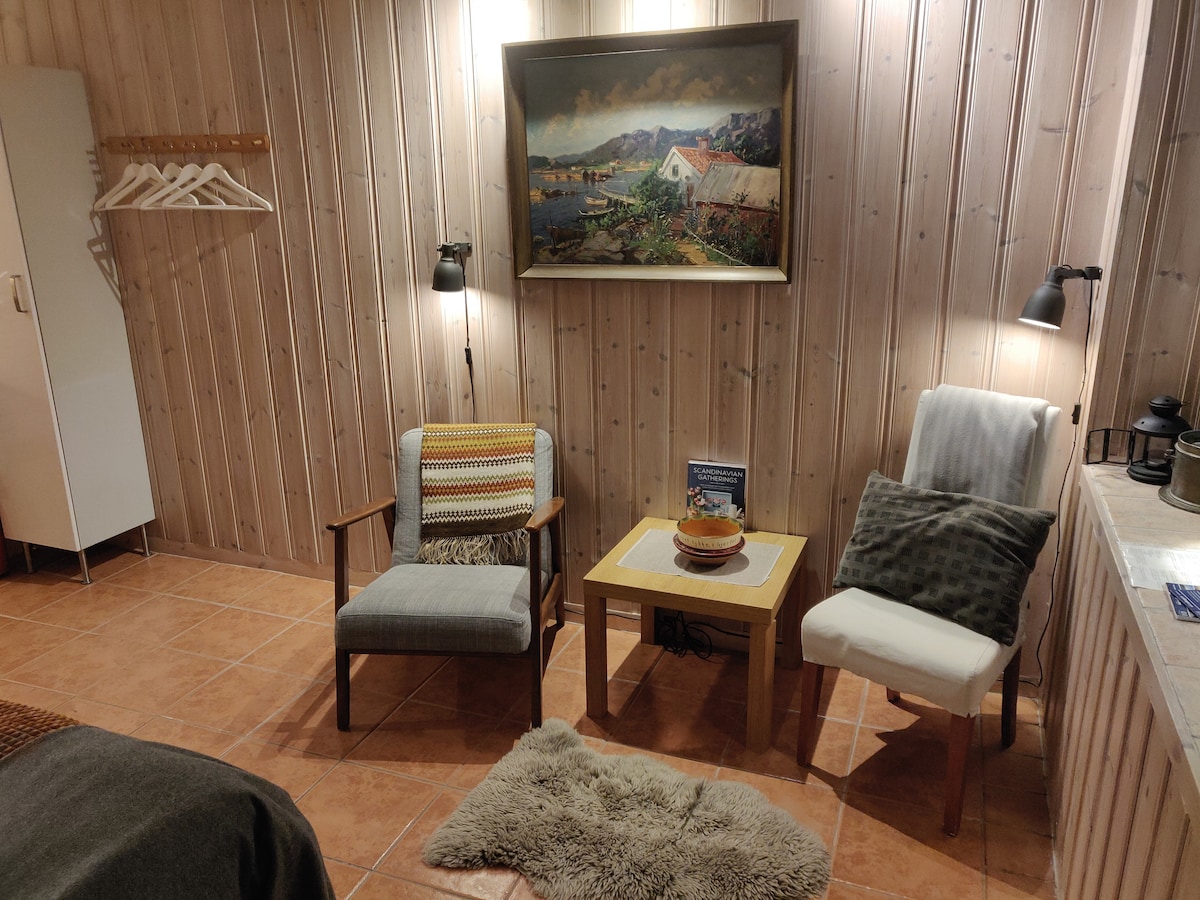 Welcome to the historic Bergen house, dating back to around 1780, located in the charming Sandviken area just a stone's throw from the bustling city center among local residents. You'll have the entire house to yourself, complete with a cozy outdoor terrace. The property is secluded from street noise, tucked away in a small alley. Its convenient location offers easy access to supermarkets, a bus stop, hiking trails, and city bike parking. Additionally, you can find paid street parking nearby.