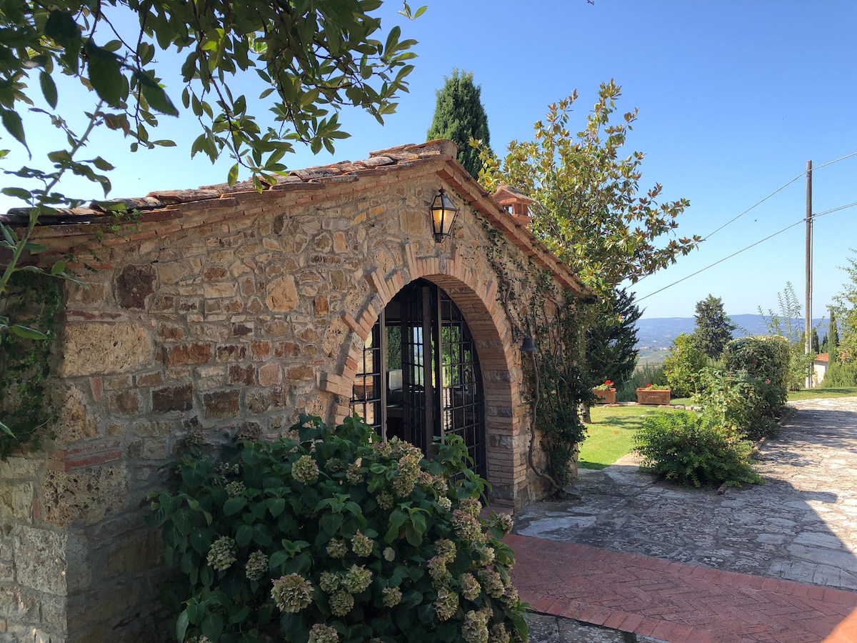 TANDAAN NA ANG PAGIGING NASA KANAYUNAN NA MAY ILANG PAMPUBLIKONG TRANSPORTASYON MALIBAN SA TAXI, ANG PINAKAMAHUSAY NA PARAAN PARA MASIYAHAN SA IYONG PAMAMALAGI AT PARA BUMISITA SA MAGAGANDANG KAPALIGIRAN AY MAGKAROON NG KOTSE. Ang 18th century Villa di Geggiano, na napapalibutan ng mga ubasan at mapagmahal na hardin, ay matatagpuan sa Chianti area malapit sa Siena, isa sa mga pinakamagagandang rehiyon ng Italy na magbibigay ng magandang tanawin at kaakit - akit na background sa iyong bakasyon. Matatagpuan ang aming guesthouse sa isa sa mga garden pavilion ng villa.