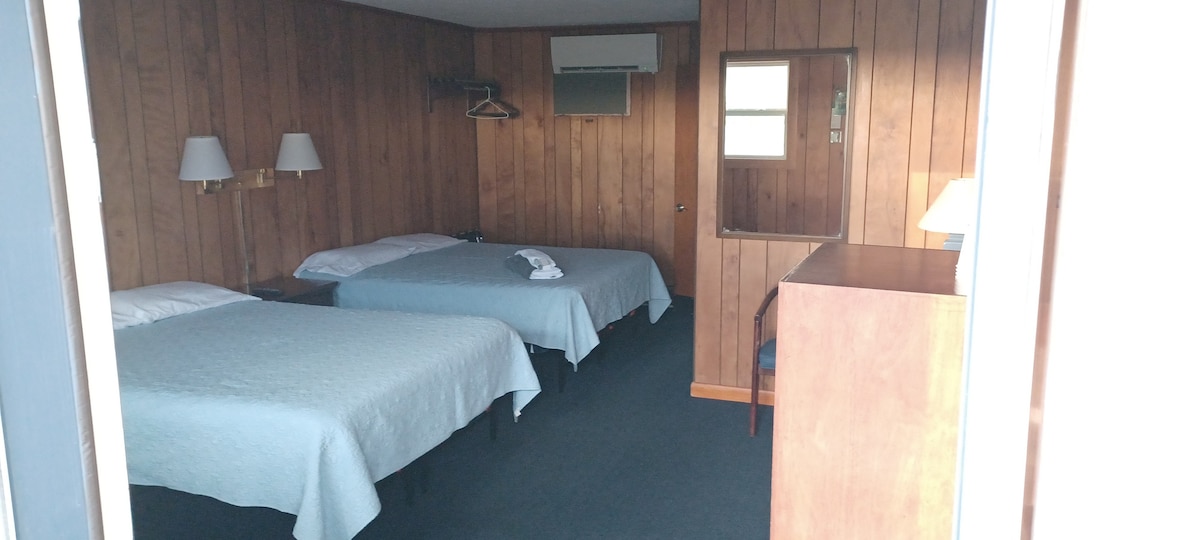 Experience a stay of rest and tranquility here at the Aroostook Hospitality in located in Washburn along 164, and the Aroostook River. This family suite unit hosts a full kitchenette, with 2 full/double beds for sleeping accommodations. Also includes: Full dresser, couch, dinette table, and desk, as well as a full ensuite bathroom with tub/shower. All units are furnished with full linens, towels, and toiletries, with the ability to refresh these during their stay as desired.