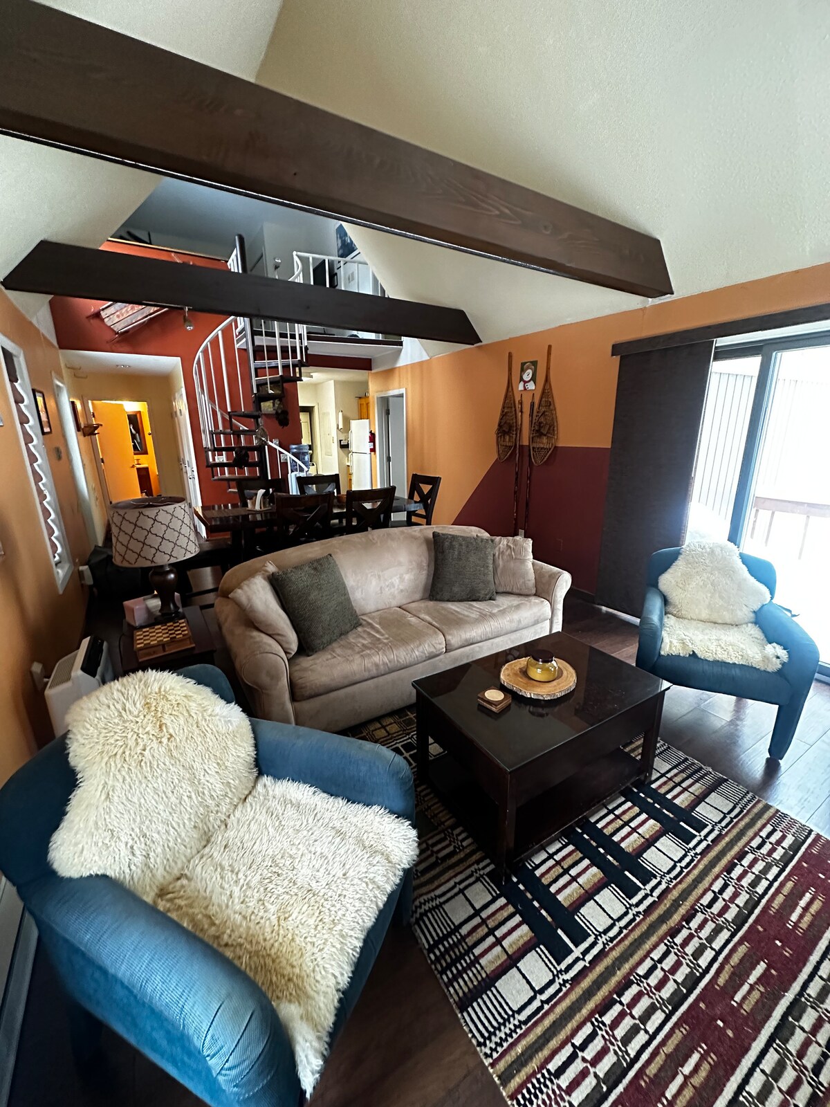 Ang mga highlight ng condo ay: - pangunahing palapag master king bedroom na may ensuite bathroom - pangunahing palapag karagdagang buong 4 na piraso ng banyo - electric fireplace -55" TV at wireless internet access - Sa inayos na itaas, isang bukas na silid - tulugan na loft na may 1 queen bed at isang buong twin bunk bed. - ikalawang palapag na silid - tulugan kabilang ang 2 buong kama na may ensuite na banyo. Ang kusinang kumpleto sa kagamitan ay may lahat ng kaginhawahan ng tuluyan kasama ng washer at dryer para sa iyong kaginhawaan.