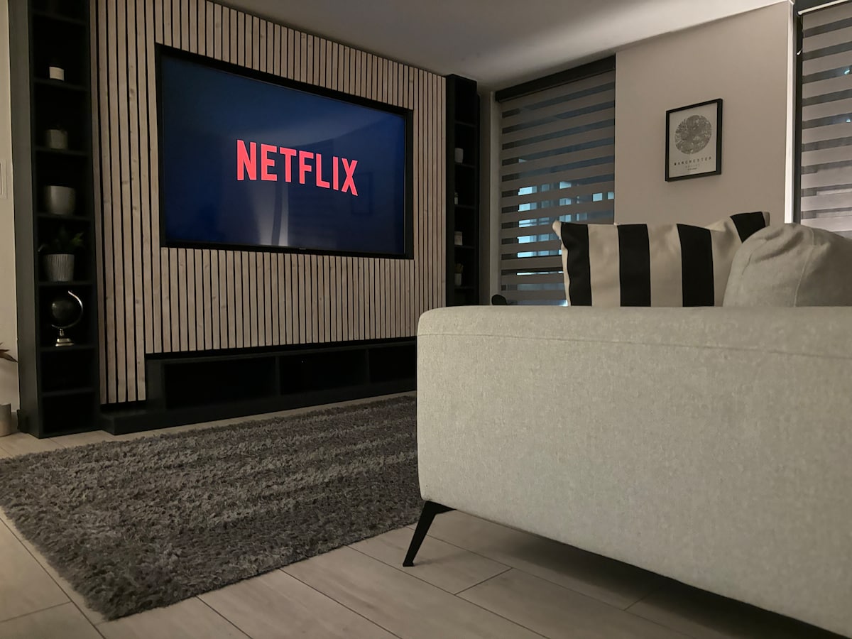 Isang bagong Luxurious 1 Bed Apartment na may Sofa Bed na may mga premium na muwebles na oak. Maliwanag, Maluwag, at Komportable nito Matatagpuan sa tapat ng Emirates Old Trafford at 5 minutong lakad lang papunta sa maalamat na Manchester United Stadium, nag - aalok ito ng pangunahing lokasyon. Bukod pa rito, may maikling 5 minutong lakad na magdadala sa iyo papunta sa tram stop, na nagbibigay ng direktang access sa mataong City Center. Tuklasin ang perpektong timpla ng kasaysayan, isports, at libangan sa panahon ng iyong pamamalagi