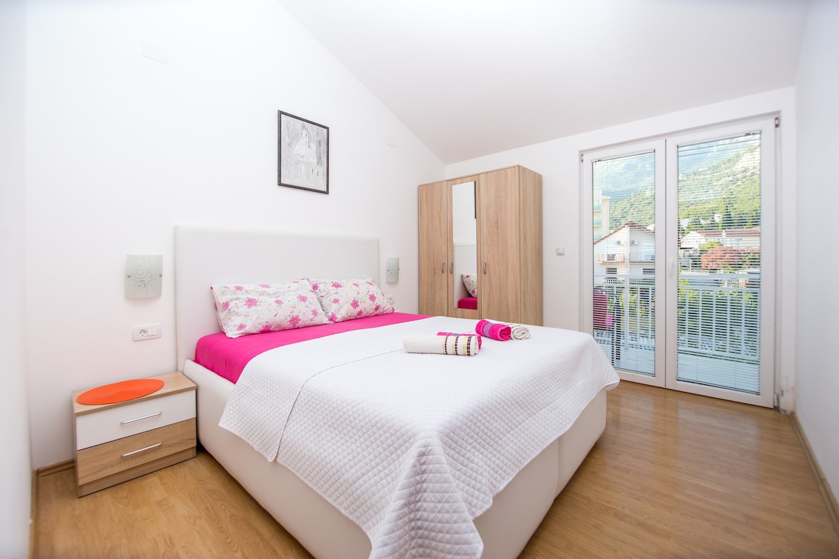 Kung gusto mong maglaan ng kaaya - aya at nakakarelaks na bakasyon sa Budva, perpektong lugar ito para sa iyo. Matatagpuan ang Big Blue Apartment sa Vidikovac area, ang mangkukulam ay nasa itaas ng Old Town at lahat ng atraksyong pangturista. 10 minutong lakad lamang ang naka - air condition na apartment mula sa Old Town, mga supermarket, maraming restaurant at beach. Nagbibigay ito ng libreng WiFi, pribadong paradahan kasama ang well - equipped kitchenette at nakamamanghang balkonahe.