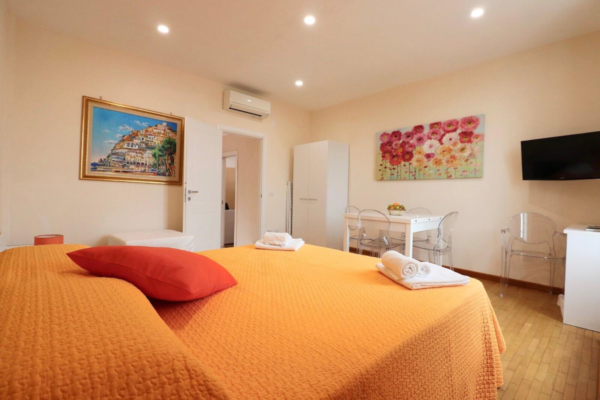 Isang magandang bagong apartment na may independiyenteng pasukan. Sa gitna ng Sorrento, sa pangunahing plaza. Mayroon itong lahat ng modernong kaginhawaan. Libreng wifi, air conditioning, usb socket, TV, air conditioning, jacuzzi bathtub, ligtas, microwave oven, coffee dryer. Lahat ng kailangan mo para sa nakakarelaks na bakasyon.