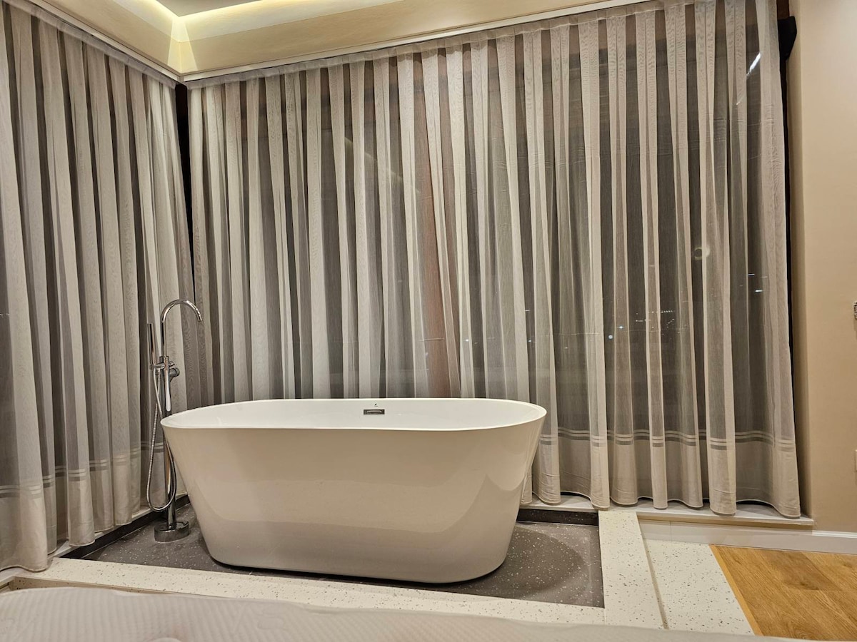 Relax and recharge in this stylish, luxurious suite apartment in the heart of Prishtina, featuring your own private hot tub for cozy evenings. Step out onto the spacious balcony to enjoy fresh air and city views. Stay connected with fast high-speed Wi-Fi, free private parking, and unwind in a comfortable living area with modern furnishings. Located in a new & modern building with elevator and staffed reception, you’re just steps away from vibrant cafes, shops, and top city attractions.