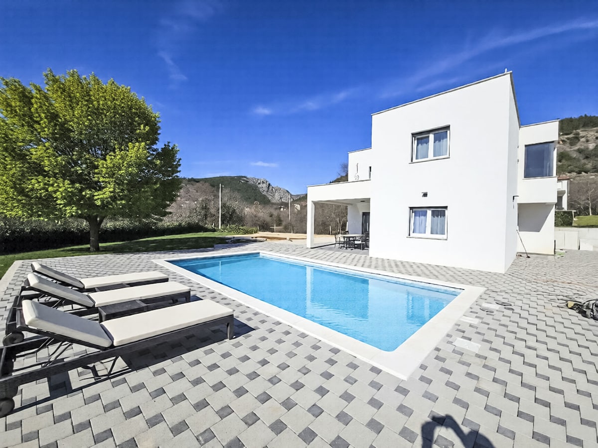 Matatagpuan ang bahay sa tahimik na lugar malapit sa Imotski, at nag - aalok ito ng kumpletong intimacy sa 220 m2 na gusali na may takip na terrace. Sa bahay ay may malawak na sala, mahusay na eqiupped na kusina, 3 silid - tulugan, 2 banyo, maliit na gym at iba pang sala. Mayroon kaming mga air conditioner sa lahat ng silid - tulugan at sala, kaya nagbibigay ito ng kaaya - ayang pamamalagi sa mga mainit na buwan ng tag - init. Puwede kang mag - enjoy at magrelaks sa pamamagitan ng paglangoy sa pool, paghahanda ng barbecue, pagsakay sa bisikleta, pangingisda, pagha - hike