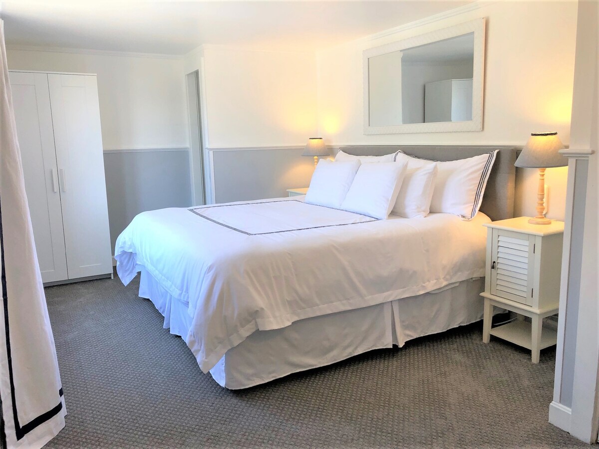 The Coonamessett offers two (2) comfortable 1st-floor King junior suites that are both ADA accessible. One large space features a plush king bed and a lounge/sitting area with a sofa and dining table as well as a private bath with a walk-in shower. These 475-510 square foot rooms also include a 43" Smart TV, Bluetooth radio, mini-fridge, individually-controlled AC and heat (window AC units used in the warmer months), and free wireless internet access.