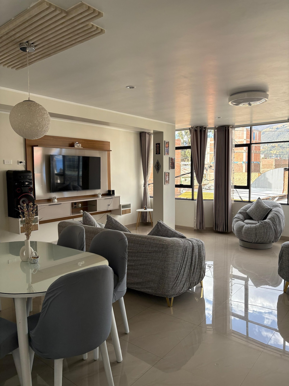 Maganda at modernong interior apartment (unang antas na may 110 m2) na kumpleto sa kagamitan, mainam na magrelaks kasama ng iyong partner at magdiskonekta mula sa mundo. 4 na minuto mula sa Huancayo Terrestre Terminal, 4 na minuto mula sa Universidad Nacional del Centro del Perú, 5 minuto mula sa EsSalud - National Hospital Ramiro Prialé Prialé, 15 minuto mula sa sentro ng lungsod. Matatagpuan sa tahimik, pribado at ligtas na lugar, malapit sa malawak na berdeng lugar, parke, parmasya, minimarket, restawran