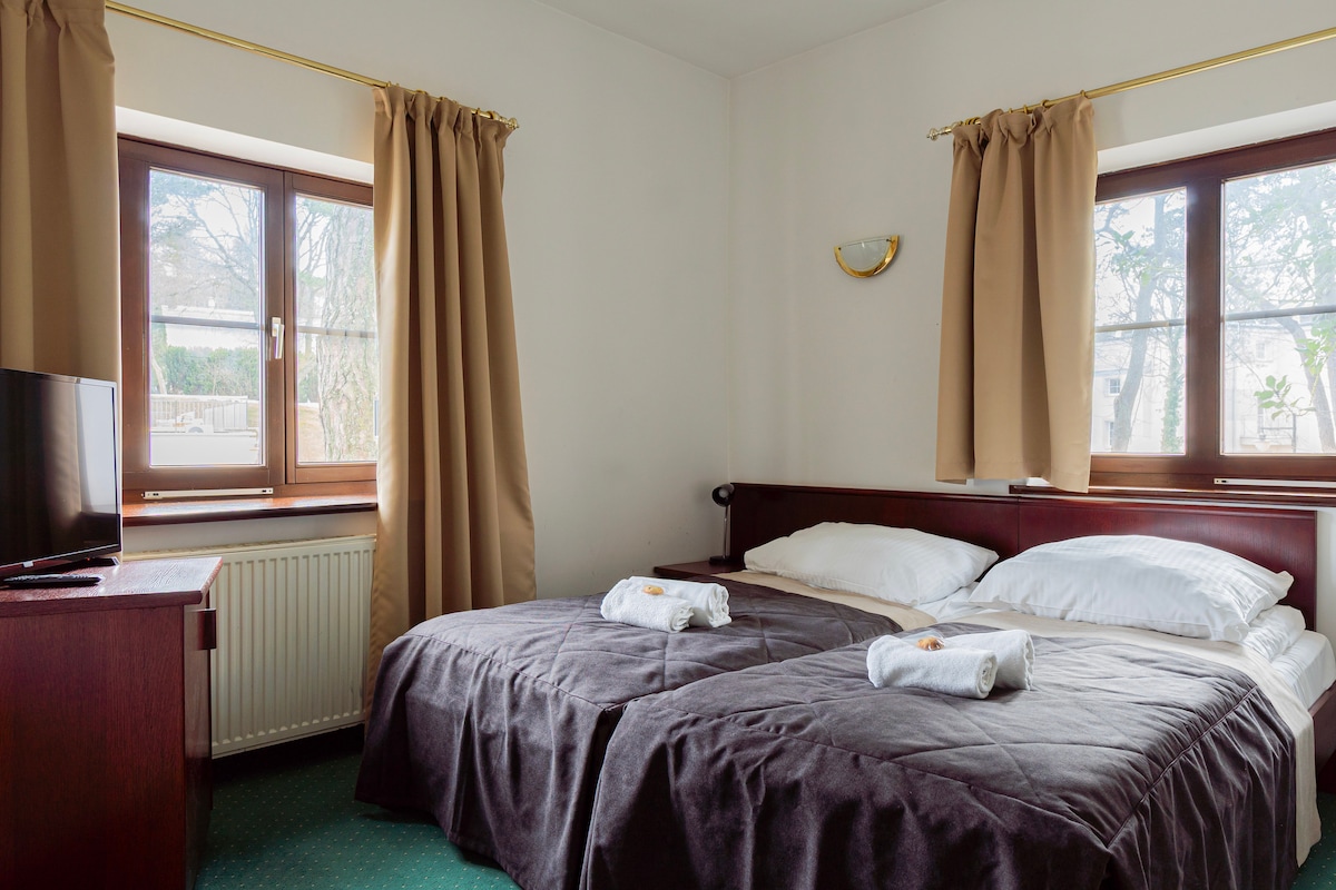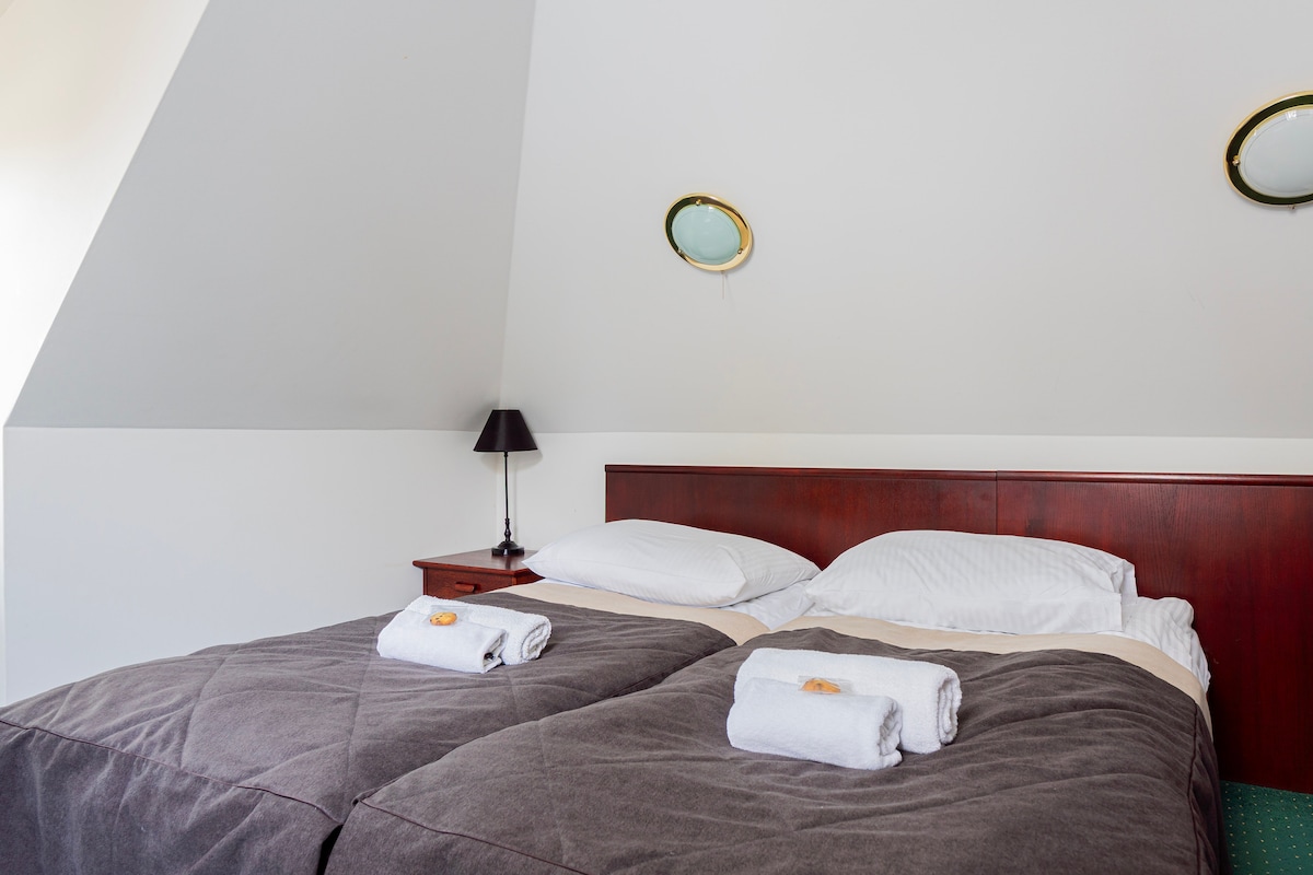 Komfortowe 19 m² w eleganckiej kamienicy w centrum Pucka. Dwa pojedyncze łóżka można ustawić razem lub osobno — idealny wybór zarówno dla par, jak i znajomych podróżujących wspólnie. Do dyspozycji: prywatna łazienka z prysznicem, telewizor, lodówka, czajnik, zestaw do parzenia kawy i herbaty oraz bezpłatne Wi-Fi.
