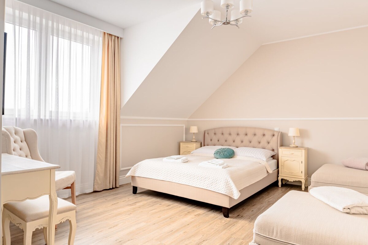 Ipinagmamalaki ng Mechowisko ang 14 metro na iluminadong pool na may sauna at jacuzzi. Perpekto ang villa para sa 14 na bisita, ipinagmamalaki ang 5 maluluwag na kuwarto, 3 komportableng banyo, at 2 maaliwalas na fireplace, kusinang kumpleto sa kagamitan, at mga amenidad na nagsisilbi sa bawat pangangailangan. Ang malawak na palaruan sa labas ay isang paraiso para sa mga bata, na nagtatampok ng zipline, kusina ng putik, trampolin, sandbox, at marami pang iba. Matutuwa ang mga mahilig sa sports sa volleyball field at ping pong table. Kami ay pet - friendly