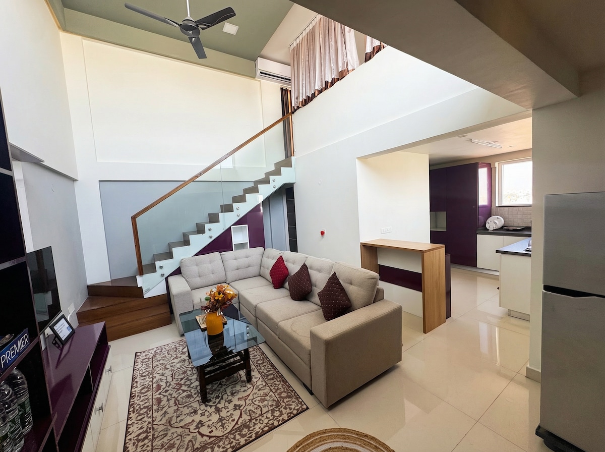 OpenSky Penthouse is a completely private top-floor retreat designed for ultimate comfort and privacy. This spacious, spotless, fully furnished stay features AC, smart TV, sofa, double bed, wardrobe, fridge, and high-speed Wi-Fi. The modern bathroom includes a geyser and essentials. Enjoy a large private terrace—perfect for relaxation, yoga, and breathtaking sunrises and sunsets. Ideal for families, couples, and business travelers seeking a serene escape.