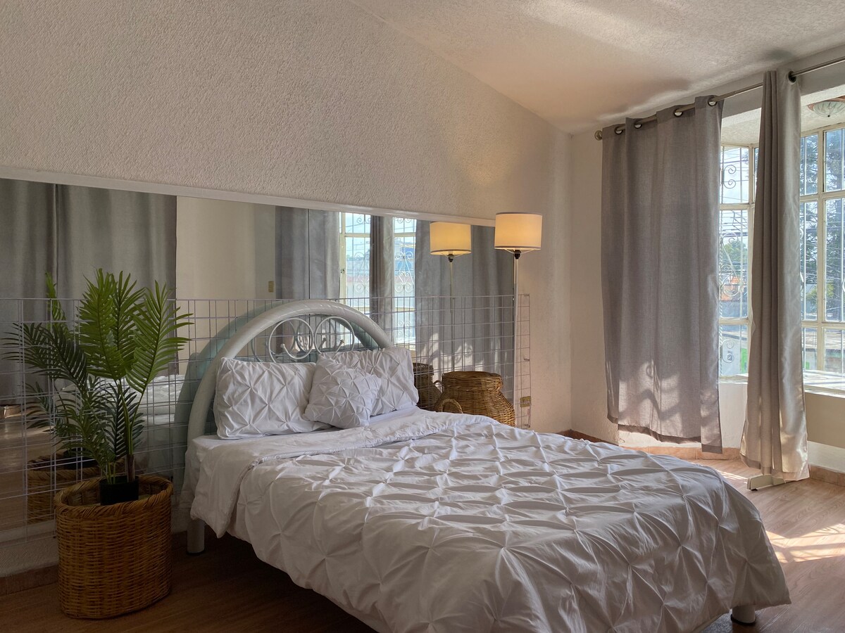 Mamalagi sa natatanging bahay na ito na may kasaysayan at malapit sa tourist area, 15 minutong lakad lang mula sa Zócalo. Dito, magkakaroon ka ng perpektong balanse sa pagitan ng kasaysayan, kaginhawaan, at pribilehiyong lokasyon. Mainam para sa mga pamilya o malalaking grupo, may 4 na kuwarto, 3 full bathroom, at mga komportableng lugar para magtipon at magsaya. Kung kailangan mo ng mas malawak na tuluyan, puwede ka ring humiling ng pribadong loft na nasa likod ng property.