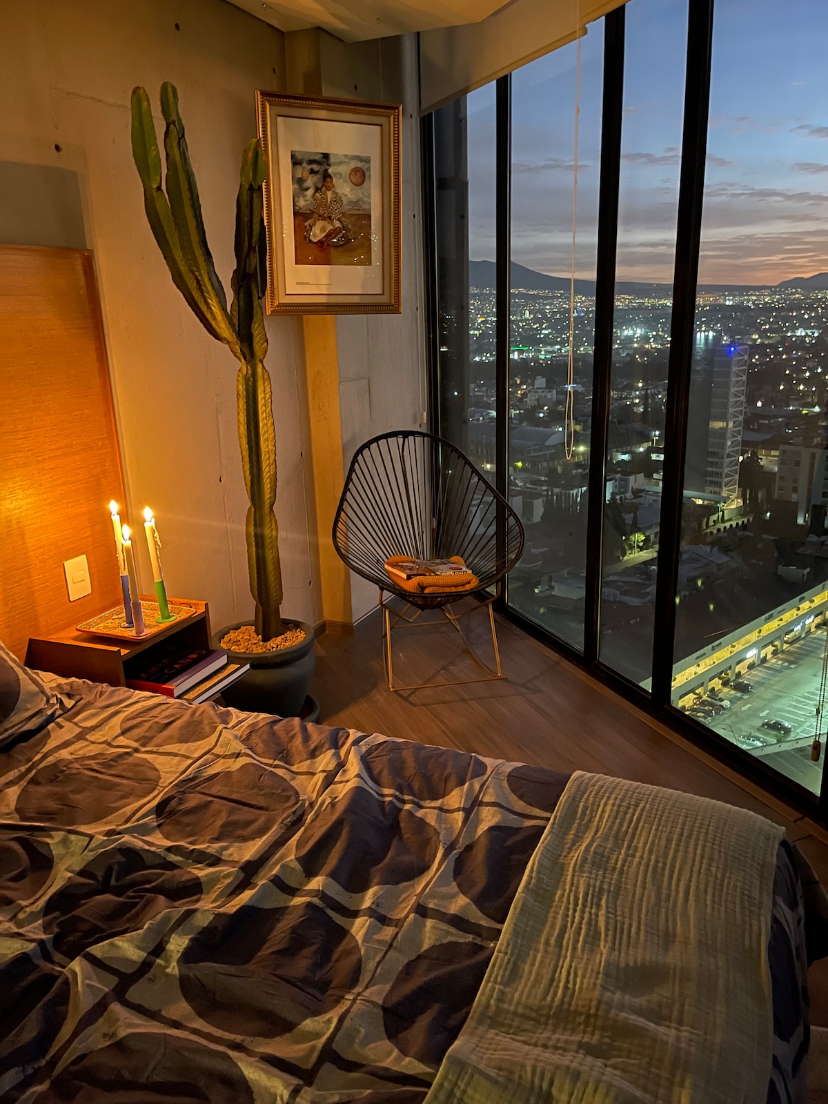 Bright, modern high-rise space on the 18th floor with open city views. Ideal for couples, friends, and relaxed longer stays. 3 Queen beds for up to 6 guests Equipped kitchen Large-capacity washer and dryer Electric blinds and high-speed Wi-Fi for home office Enjoy a 24/7 GYM, rooftop, and in-building parking for 2 cars Pet-friendly building with security service and 24/7 security cameras Quick access to Cholula, Angelópolis, and key attractions