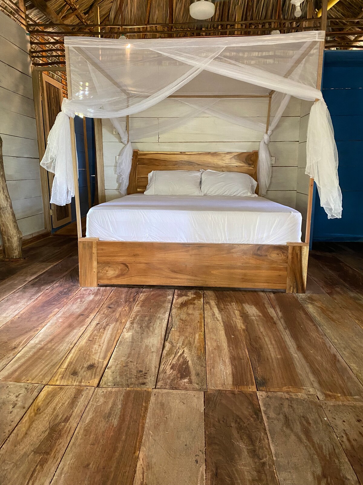 Oceanfront cabin #2 beachfront at beachfront. Pribadong banyo at A/C sa bawat kuwarto. Tamang - tama para sa mga naghahanap ng katahimikan na malayo sa pagmamadali at pagmamadali ng lungsod. Ang pagiging isang lugar ng malinis na beach, ang pag - aalaga sa kalikasan ay isang priyoridad. Mahalagang magdala ka ng mga grocery na mahahanap mo 5 km ang layo sa Moñitos, maaari ka ring kumuha ng serbisyo sa pagkain kasama ng aming host. Inirerekomenda namin ang crab rice o ang purri (crab soup) at iba pang tipikal na pagkain.