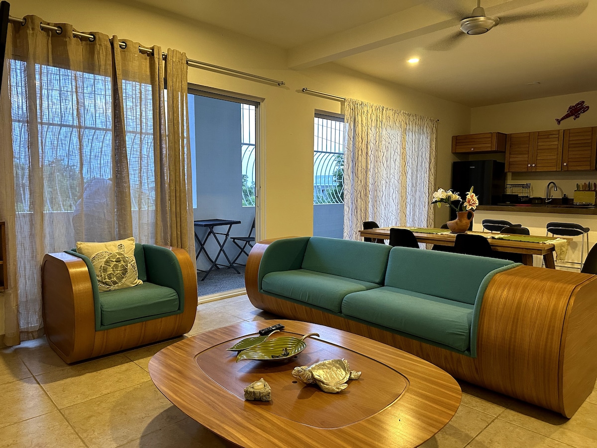 The penthouse is an oceanview apartment only 4min walking from the beach with restaurants & shops right around the corner. The huge private rooftop is the perfect place to gaze at the ocean & sunsets with a breeze. The apartment has mosquitoscreens , king size bed, AC, smart tv , starlink, open kitchen, and is spacious and well lit. In the garden there is a dippool to refresh and loungechairs to sunbathe.