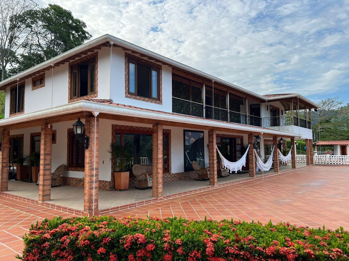 Halika at tamasahin ang mga kababalaghan ng Middle Magdalena sa kaginhawaan, katahimikan at seguridad ng Casa Perales, isang eksklusibong tuluyan kung saan mahahanap mo ang lahat ng kailangan mo para sa isang kaaya - ayang pahinga na malapit sa iba 't ibang atraksyong panturista sa sektor tulad ng Hacienda Naples, Reserva Río Claro at iba pang mga lugar na ikagagalak naming gabayan ka upang masulit ang iyong karanasan. Mga modernong apartment kung saan makikita mo ang availability ng pagpapatuloy para sa hanggang 50 tao