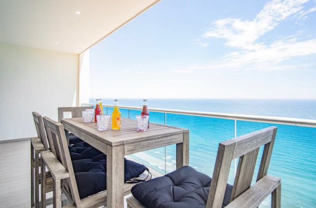 Napakaganda ng modernong tatlong silid - tulugan na condo at katabing 2 silid - tulugan na condo - hindi konektado sa mga nakamamanghang tanawin ng karagatan. Limang kumpletong banyo, apat na master bedroom na may tanawin ng karagatan at isang bunk room para sa mga bata. MALAKING patyo na may mga couch, high top table, upuan at ihawan. Ganap na bukas ang mga pinto para sa panloob/panlabas na kasiyahan. Hindi mabilang na amenidad tulad ng mga pool ng Infiniti, swimming up bar, hot tub, water slide, tamad na ilog, fire pit, pribadong beach access, shower sa labas, mga serbisyo sa pagmamasahe sa iyong kuwarto, serbisyo sa kuwarto, STARBUCKS