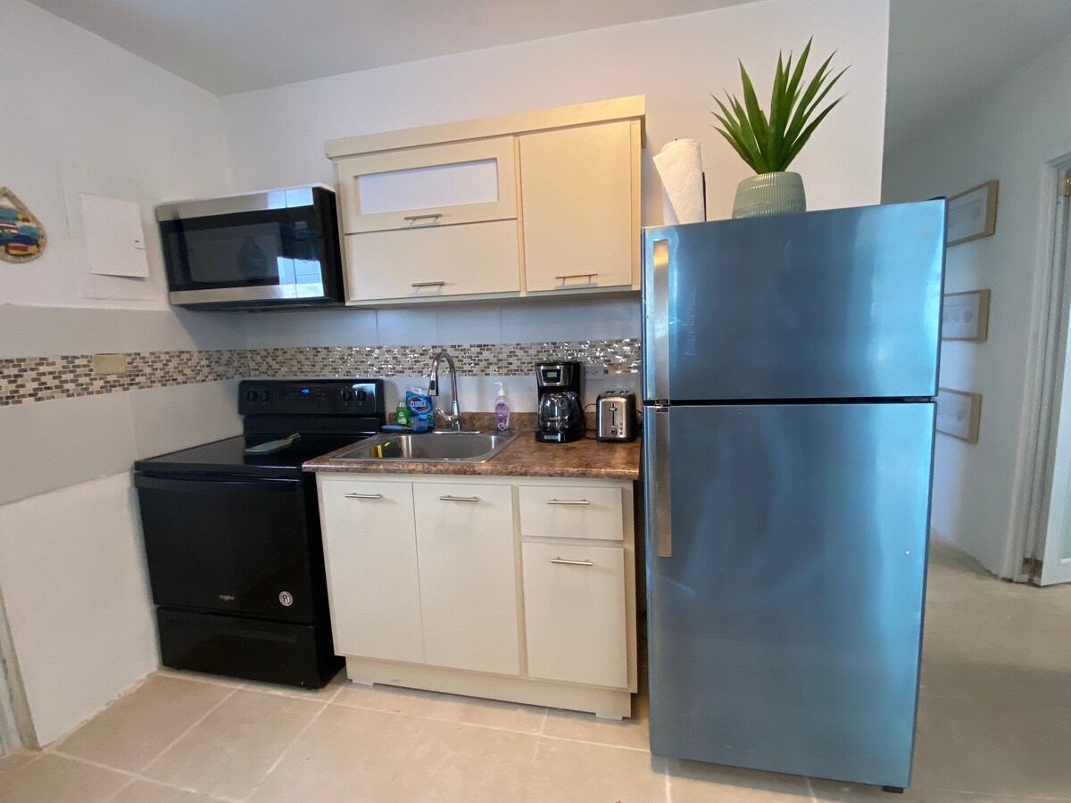 Kilalanin ang Casablanca 461 (dating Casa Ms. Brown)... na may kasaysayan at personalidad, ito ay isang maliit na bahagi ng aming tuluyan. Nagtatampok ang aming apartment ng pasukan at paradahan sa harap, isang silid - tulugan na may queen - size na higaan at A/C, pribadong banyo, sala, kusina, at silid - kainan. Bukod pa rito, isinasaalang - alang ang iyong mga paglalakbay, isinama namin ang mga snorkeling gear, tuwalya, upuan, at cooler para masiyahan ka sa beach na parang lokal.