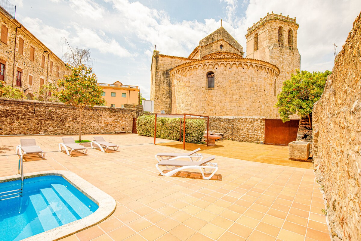 Ang tanging nakahiwalay na bahay - bakasyunan sa magandang makasaysayang complex ng medieval na bayan ng Besalú, na itinuturing na isa sa mga pinakamagagandang bayan sa bansa. Ang dating tuluyan ng pamilya ng miller ay may tatlong espasyo sa labas (beranda, hardin at malaking halamanan) at dalawang palapag: ang mas mababang tuluyan na may sala/silid - kainan at bukas na kusina at ang itaas na may banyo at tatlong silid - tulugan. Mga de - kalidad na pagtatapos at dekorasyon na tipikal ng isang tipikal na country house.