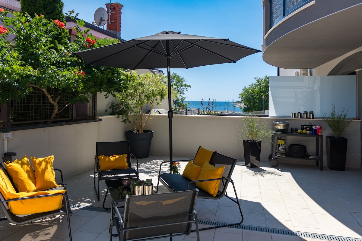 Matatagpuan ang magandang apartment na Sea Ya sa tabi mismo ng dagat at nag - aalok ng kamangha - manghang 180 degrees panoramic open view ng dagat at daungan sa makasaysayang Rovinj! Sa pamamagitan ng dalawang banyo, kumpleto ang kagamitan nito para sa matagal na pamamalagi sa gitna ng Rovinj, ilang metro lang ang layo mula sa pangunahing plaza ng Rovinj at sa natatanging pamilihan. Tinutulungan namin ang aming mga bisita na may libreng paradahan sa cca 8 hanggang 10 minutong lakad ang layo. Romantikong setting na may madaling access sa lahat ng interesanteng lugar - umaalis ang mga bangka para sa mga isla mula sa ibaba lang ng iyong mga bintana.