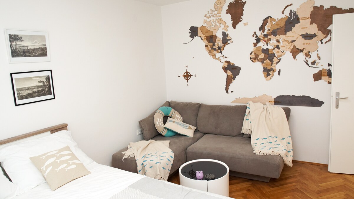 A 25 m2 cosy studio located in historical neighborhood at one of Austro-Hungarian old villa, one of the most famous street in Pula, former elite neighborhood of the Austro Hungarian Navy, where are lived high class officers. Apartment is stylishly furnished for you to have a comfortable stay in Pula.
