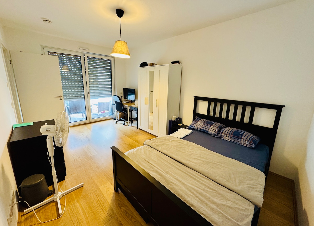 Bright, newly renovated one-room apartment. Quiet location in Munich’s south, 10 min to motorway, 30 min to city center by bus/U-Bahn. Free street parking available. Supermarket 3 min away, restaurants within 10 min walk. Fully equipped: mini kitchen, cooking utensils, private bathroom with shower. TV and internet in the room. 140×200 cm bed with fresh linen and towels.