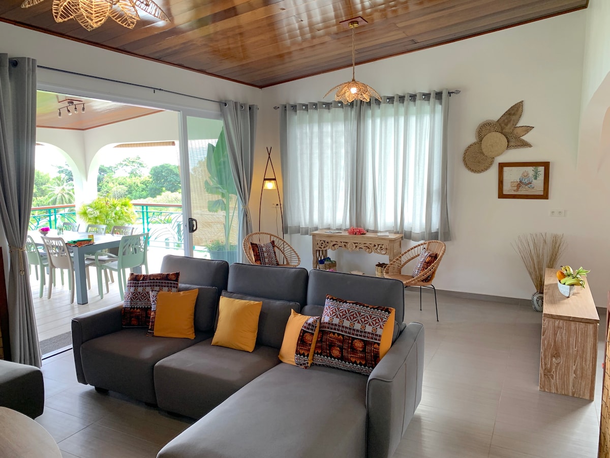 Ang aming kaakit - akit na 85m² na bahay at ang22m² terrace nito ay nag - aalok sa iyo ng nakamamanghang tanawin ng kahanga - hangang isla ng Moorea. Maaari kang magrelaks sa mga komportableng lugar, habang may posibilidad na magtrabaho salamat sa isang motorized desk at pangalawang screen para sa isang dual display kasama ang iyong laptop. Ang mahusay na koneksyon sa internet ay magbibigay - daan sa iyo upang manatiling konektado sa iyong trabaho. Halika at mamuhay sa isang natatanging karanasan sa bahay na ito kung saan ang kaginhawaan at bakasyon ay magkahawak - kamay.